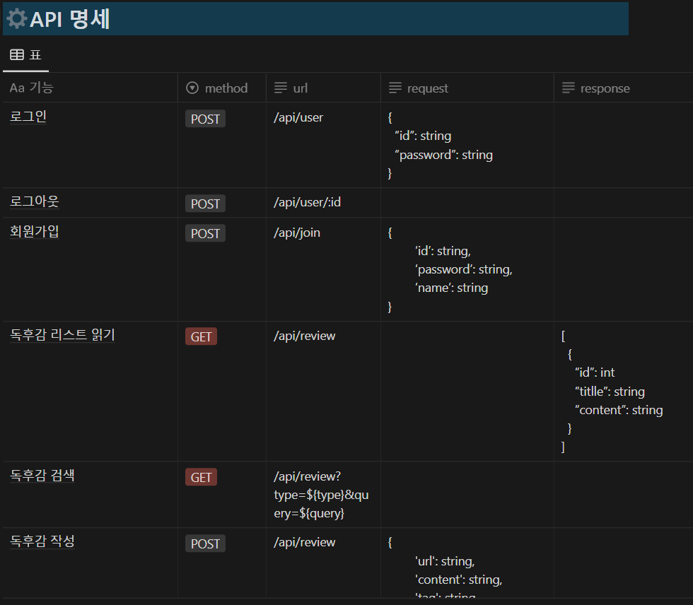 추가로 기술매니저님 피드백으로 request, response에 자료형을 적어주면 훨씬 좋다고 하셨다.