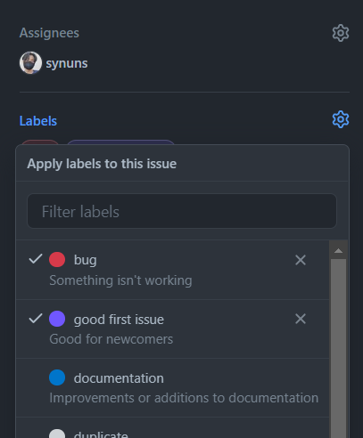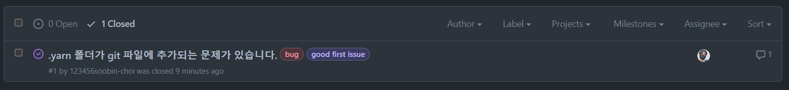 이슈 사항에 맞는 label을 선택한다.