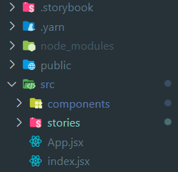 설치가 완료되면 .storybook 과 stories라는 폴더가 생성된 것을 확인할 수 있다.