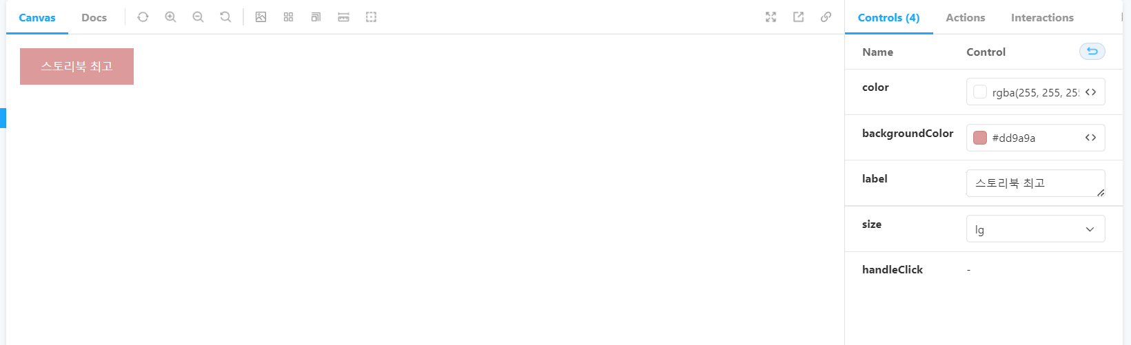 이렇게 각 props의 컨트롤 타입을 지정해주어서 어떻게 선택해줄 수 있을지 옵션을 어떻게 줄지 지정해줄 수 있습니다.