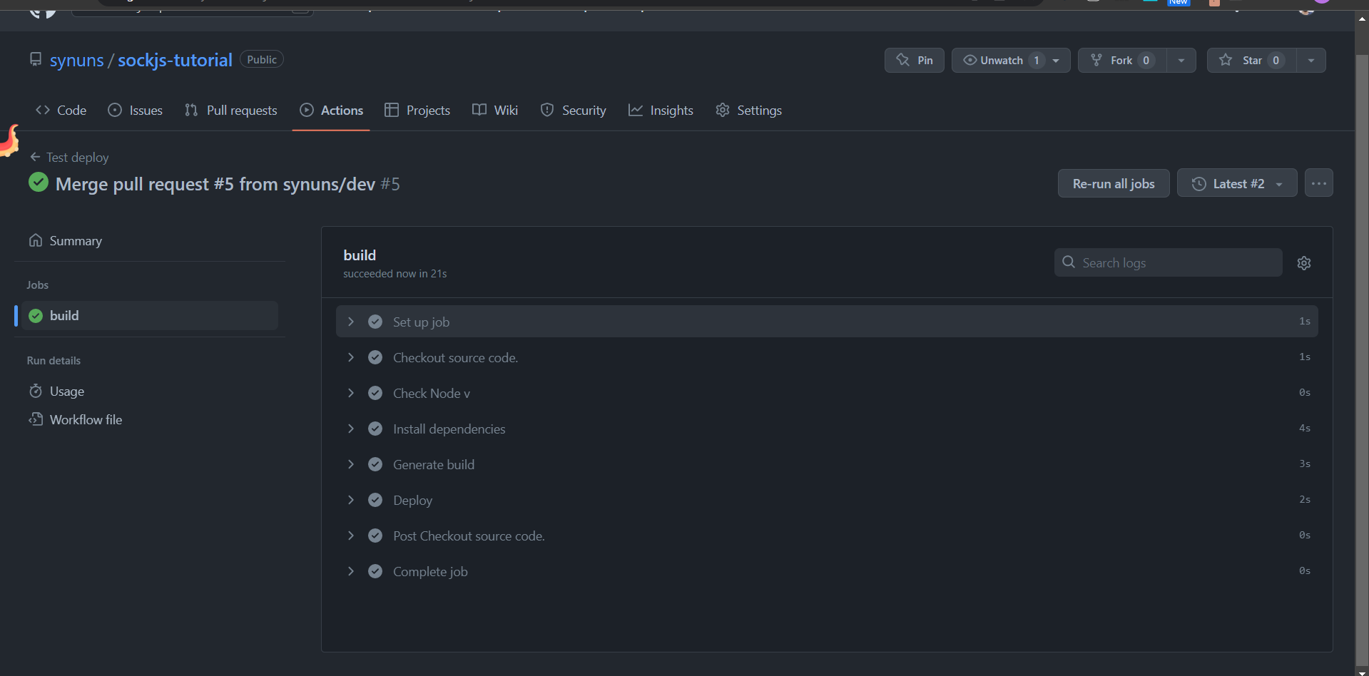 규칙을 main 브랜치에 push될 때로 설정해놓았으니 pr merge를 해준다.