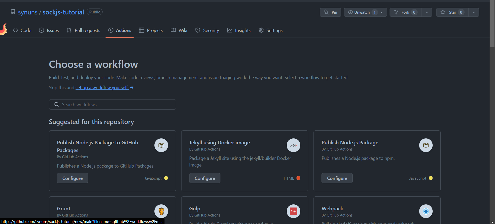 Actions에 들어오면 workflow를 작성할 수 있다. set up a workflow yourself라는 작은 파란색 글씨를 선택한다.