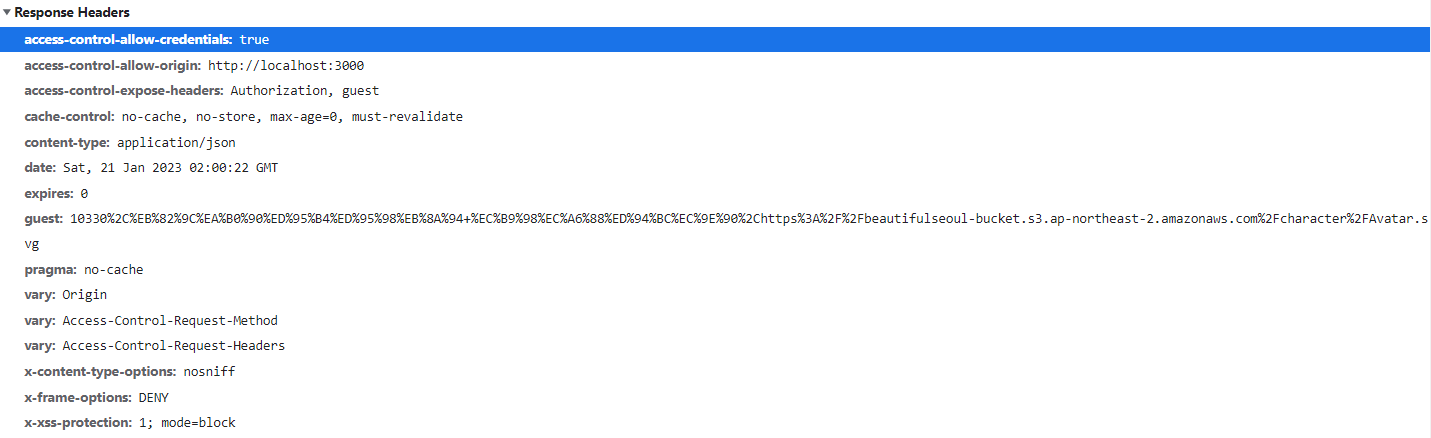 ⇒ Access-Control-Allow-Origin헤더는 서버에서 보내주는 응답에 명시하는 부분이기 때문에 요청에서 필요 없는 부분인 request 헤더에 있던 Access-Control-Allow-Origin은 삭제하였습니다.